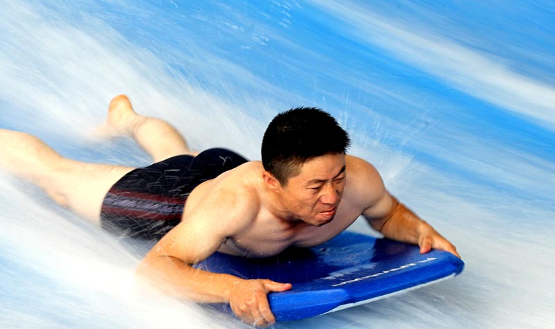 翻江倒海(大水环组合)从高台瞬间跌落,依靠重力惯性冲入立面环状水环滑道,再落入水池中,享受水浪拍打的刺激与快速穿梭滑道的快感。爱琴湾(造浪池)犹如置身于波浪汹涌的浪潮中,倍觉回归自然的轻松惬意,享受在大海中嬉水的自由与欢乐。随海浪拍击节奏轻轻呼吸,弹奏与自然的和谐之曲。