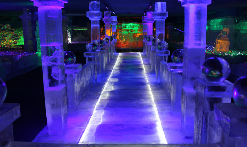 老街冰灯艺术馆景观区为游览区,互动区将动漫元素融于冰雕设计之中,大量声、光、电高科技手段运用其中,使冰雕与声光电完美融合,异彩纷呈。老街冰灯艺术馆用七彩冰雕展现风光与文化,为游客呈现了集文化、艺术、休闲、娱乐于一体的水平冰雕艺术作品大型室内展览。