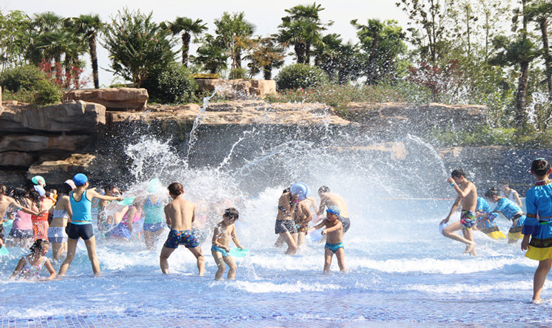 室外园林温泉区,根据“赏金燕八景,泡万寿十汤,享千年灵气” 科学合理的规划了室外温泉泡池区、森林SPA汤屋、大型冲浪泳池、无边界泳池、儿童城堡、丛林滑梯、沙滩排球等配套。而且池内加入各种香薰精油,利用温泉水和精油的结合,以达到香肤护体的功效。