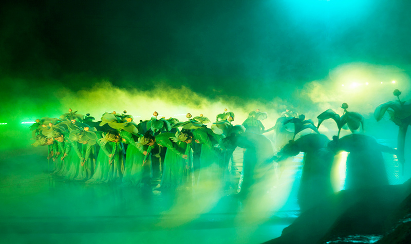 走进《梦里老家》,就是走进了奢华的灯光特效。演出现场安装了目前国内大规模的环境艺术灯光工程,一万个特效灯光设备布满了整个山体,为观众创造出一种美轮美奂、瞬息万变、光影淋漓的视觉艺术效果。整个演出犹如一场真正奢华的灯会。