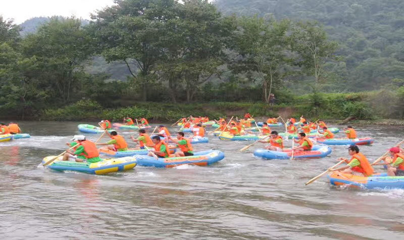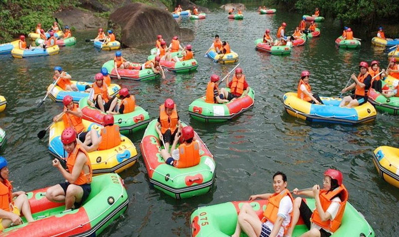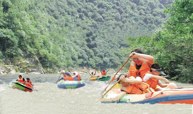 整个河道两岸密林鳞次栉比、无道可攀,唯有舟行无一条路上岸、无一户人烟。河道穿越于深山峡谷之中,在这里整个人融入大自然之中,释放一身的倦意。你只能听到浪涛声和鸟鸣声的自然之声,让您真正感受到“艇在河里漂、人在幽谷行。