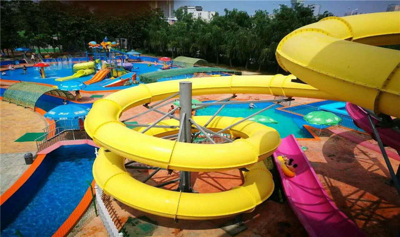 蛟龙滑梯 高速蛟龙滑梯无疑是刺激的常规滑梯,高15米,从高滑盘旋滑到低部时达到快速度,游客能体验到真正的失重的感觉。追求冒险的你一定会爱上它。无论亲身体验的你或周围的观众都能被它的惊险征服
