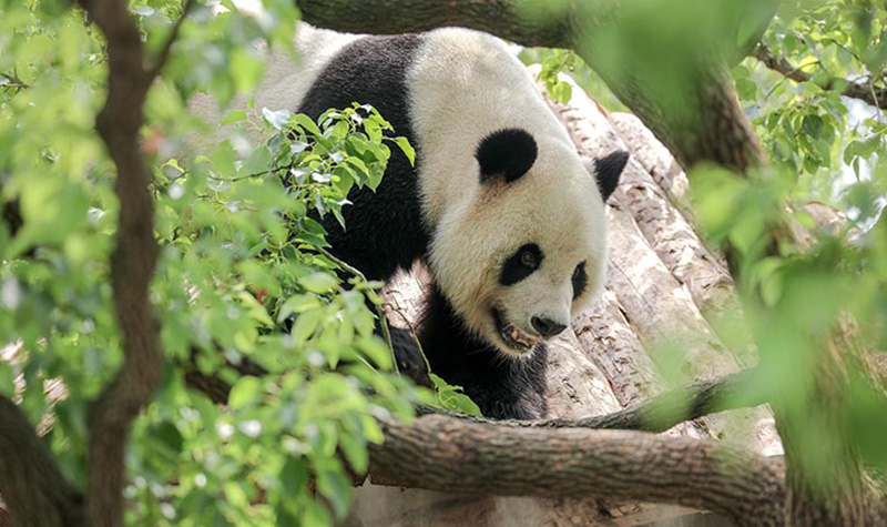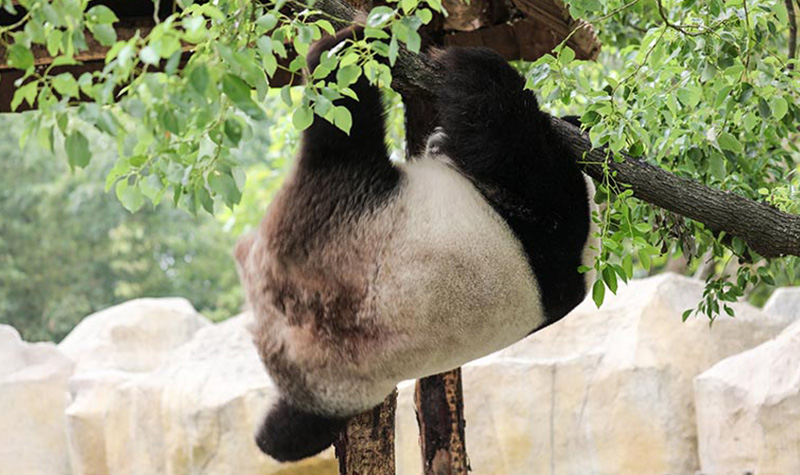 大熊猫雅奥是一只已经13岁的“帅猫”。最近天气初见凉爽,雅奥童心未泯,像小朋友一样爱上了户外爬树运动。也许爬树不能充分表达它的好心情,这不,雅奥又挑战自我,欢脱地爬上了新屋顶,到达了新高度。