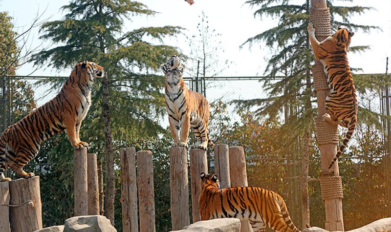 猎豹区是车入区的第二个区域。生态环增境拟非洲热带和半荒漠草原,放养着来自非洲的一豹。狮区是进入车入区的第三个展区,该区生活着一群非洲草原上凶猛的食肉动物非洲狮。虎区是车入区的第五个展区。分开放养着东北虎和华南虎。老虎不太会攀爬,却善于游泳,喜欢洗浴。每当游览车经过,虎群等待活食投喂,然后迅然发起突袭。黑熊、棕熊更是大胆,直接扒着铁网挂在车上,对着食物就大块朵颐。展区内你看不到动物的笼舍,没有都市里的喧嚣与污染,也没有水泥森林的压迫感,只有满目的青翠和回归大自然的静谧与清新。对每一位游客来说,乘坐游览大巴,深入到食肉动物自由出没的原野、丛林,是一种充满着恐惧和刺激的历程。