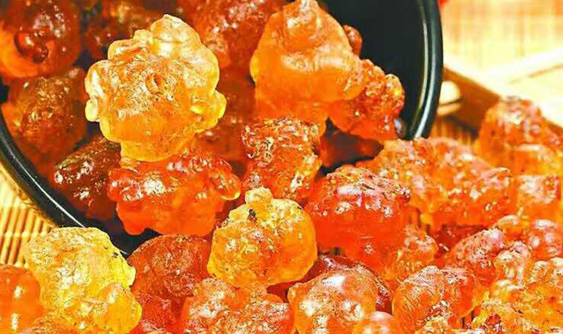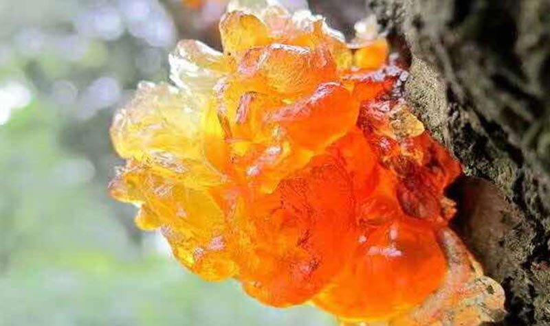 桃树树干上的裂口,雨后会有树胶沁出,结晶后凝固称为桃浆。也称水蜜桃浆、桃胶和桃凝。有粘性,可食用。多见于南方,呈琥珀色,半透明。