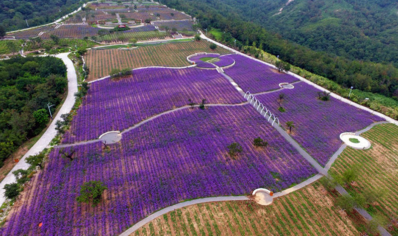 园区种植了十几种薰衣草、蓝花鼠尾草、柳叶马鞭草、荆芥(蓝月亮)、穗花婆婆纳等不同花种,形态各异。如此染紫滴绿、幽香飘逸,充满艳秋世界的美妙氛围,置身其中,让人心旷神怡,让人触发灵感,让人萌生创意。
