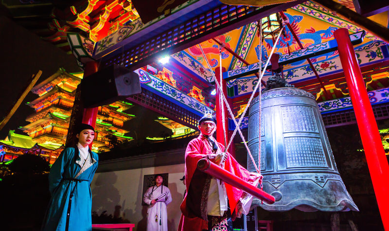 以唐朝亲王规制,再现滕王为天地众生敲钟祈福的庄严仪式。