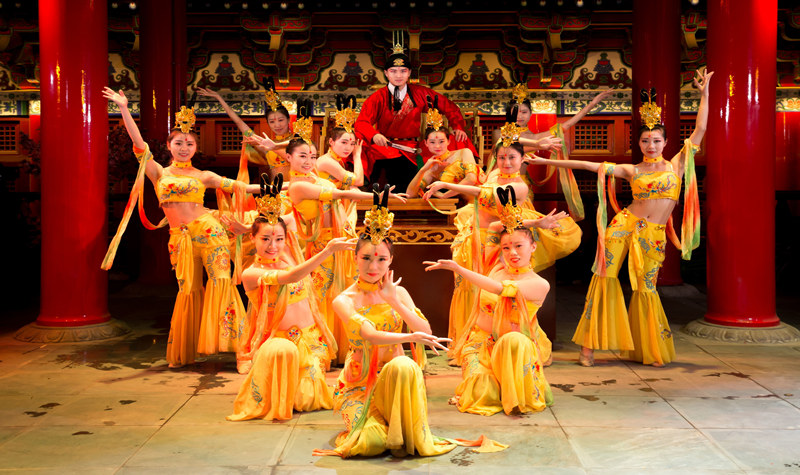 大唐盛世,万邦来朝。盛唐的气度,以古琴之雅沉、舞蹈之端庄,歌曲之悠扬,互相配合,表现唐代礼仪的典雅雍容。
