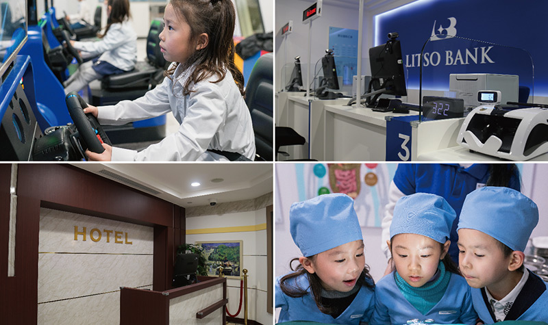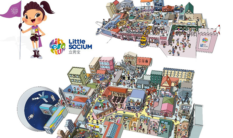 “Little SOCIUM立秀宝”儿童社会体验英语小镇1号旗舰店坐落于中国上海新江湾城悠方购物公园,由BYRON资产管理有限公司投资金额 1 亿人民币,历时5年打造而成,占地 8,000 平方米,共有 51 个场馆, 75 种职业可供体验。是为3-13岁儿童量身制作,集教育性、专业性、娱乐性、国际性为一体的乐学天堂,孩子能在这里体验到“公共服务”、“新闻媒体”、“生活服务”、“交通运输”、“文体艺术”、“科技研究” 6 大领域的 75 个不同的职业。孩子透过逼真的职业体验全面了解成人的社会面貌,激发他们的学习兴趣及主动性,实现自我价值,奠定未来的发展方向。