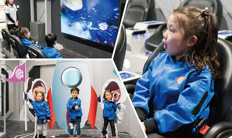 推荐的逼真体验! “宇宙飞行”是一个4d的模拟驾驶,小朋友们可以扮演“宇宙飞船船长”,体验太空穿梭的感觉。“宇宙行走”是模拟失重空间的,可以安全地体验到太空失重的感觉
