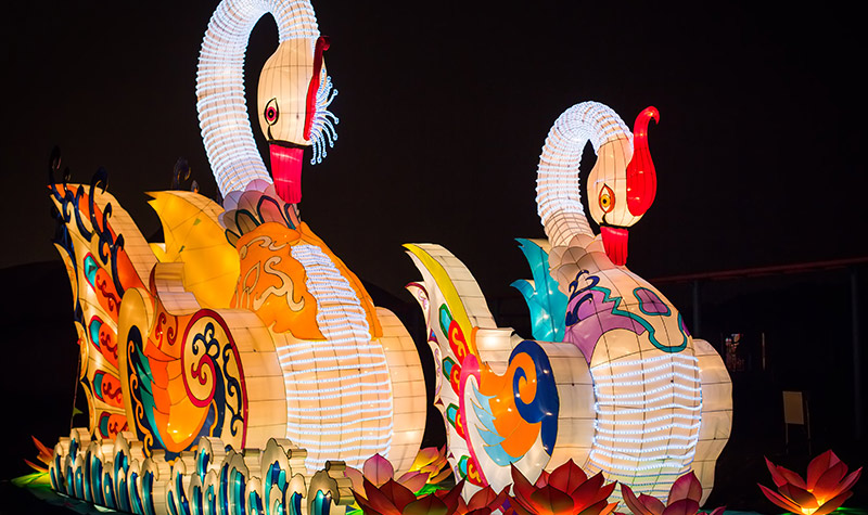 白天看了植物雕塑,晚上再看玲珑彩灯,来自四川自贡50名制灯工艺师,已经制作完成几十组灯展,大的灯组高达数十米,千万别以为是一个个简单彩灯,到时候你会看到“司马光砸缸”“孔融让梨”等历史人物,还能看到“财神招财”“新婚燕尔”等喜庆吉祥,扎出不一般的故事,体会人世间的欢愉
