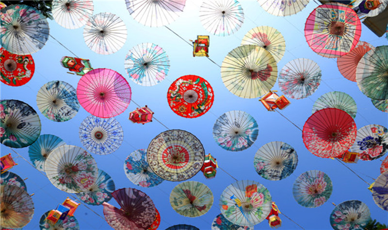 多彩油纸伞如花盛开