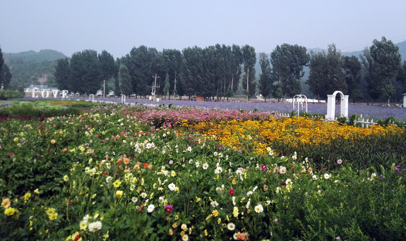 北京紫海香堤香草园,位于密云县古北口镇汤河村,与司马台长城比邻。总计占地350亩,2007年8月正式建设,是以“普罗旺斯”式浪漫田园为范本,打造的新型情景旅游度假地,“无垠的香草田”、“安静的汤河水”、“茂密的金山林”构成了一副绝美独有的风景图画。