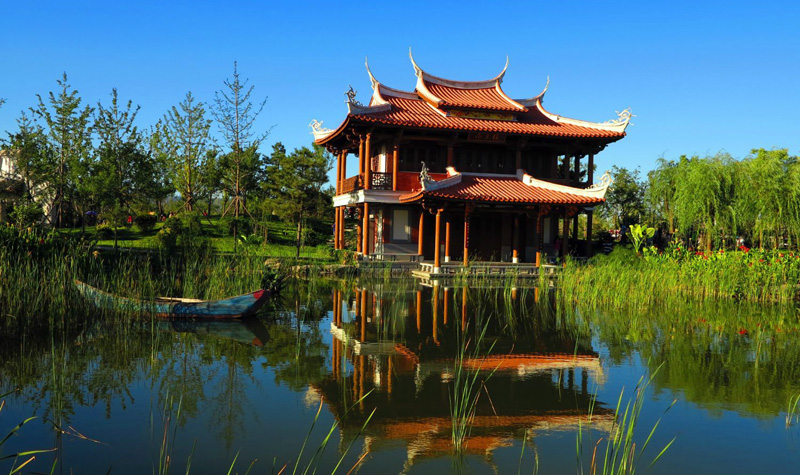 作为园博园核心区的主建筑,主要用于展示国内外造园艺术以及园林绿化新技术、新材料、新成果,展示奇石、插花、盆景等各类园林艺术作品。
