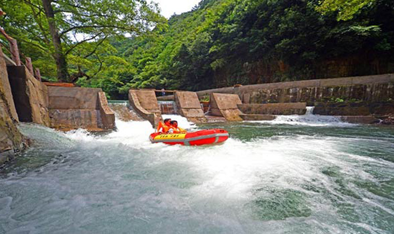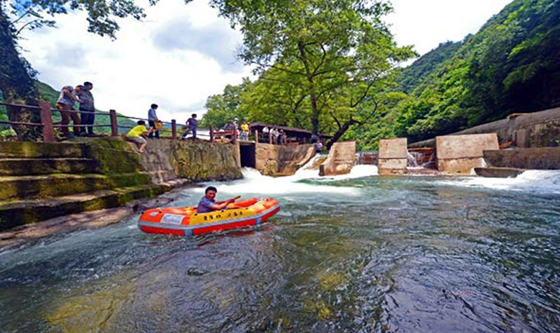 素有《皖南较净水漂流》之称。漂流河段全长2公里,落差45米,河水湍急,惊险刺激。整条漂流河道处于大山与古木大树之间,山间常年烟雨弥漫,独具风格。