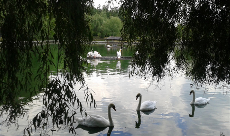 赏心悦目的园林景观 人与动物共享大自然的美好